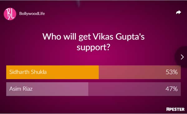 Now, he had entered the Bigg Boss house which is now divided as Sidharth Shukla's group and Asim Riaz's group. The two best friends were very close to each other but now have separated and things have ugly between the two now. The celebrities outside are also divided between Sidharth's supporters and Asim's supporters. Since Vikas Gupta had entered the house, fans wanted to know whom he will support in the house. We had asked the fans whom they feel will the mastermind support, Sidharth Shukla or Asim Riaz. As Vikas is known as the smartest player, his input will definitely change the approach of either of the individuals. Fans have given their opinion and said that Vikas Gupta will support Sidharth Shukla. Sidharth Shukla is one of the favourites of this season and fans feel he will get the support from Vikas. However, just 53% feel Sidharth will get Vikas' support and the rest 47% feel Asim will get his support. Check out the poll results here: